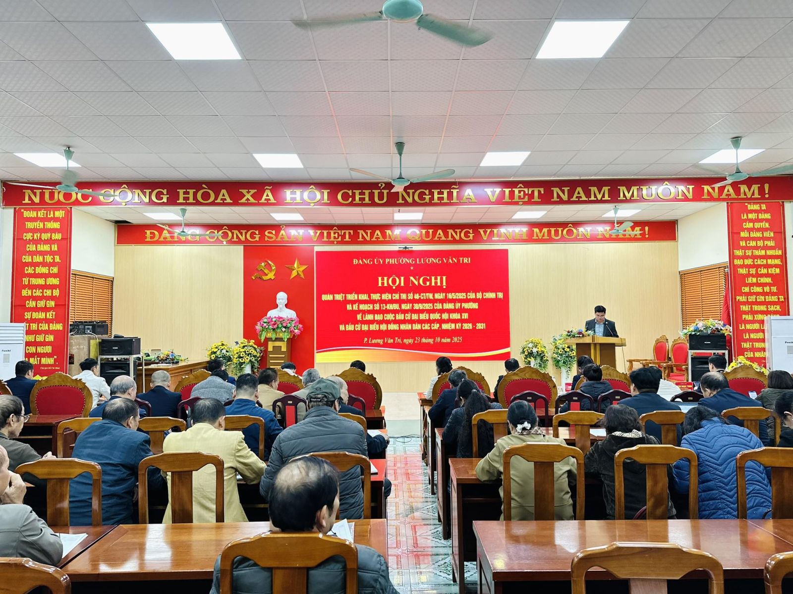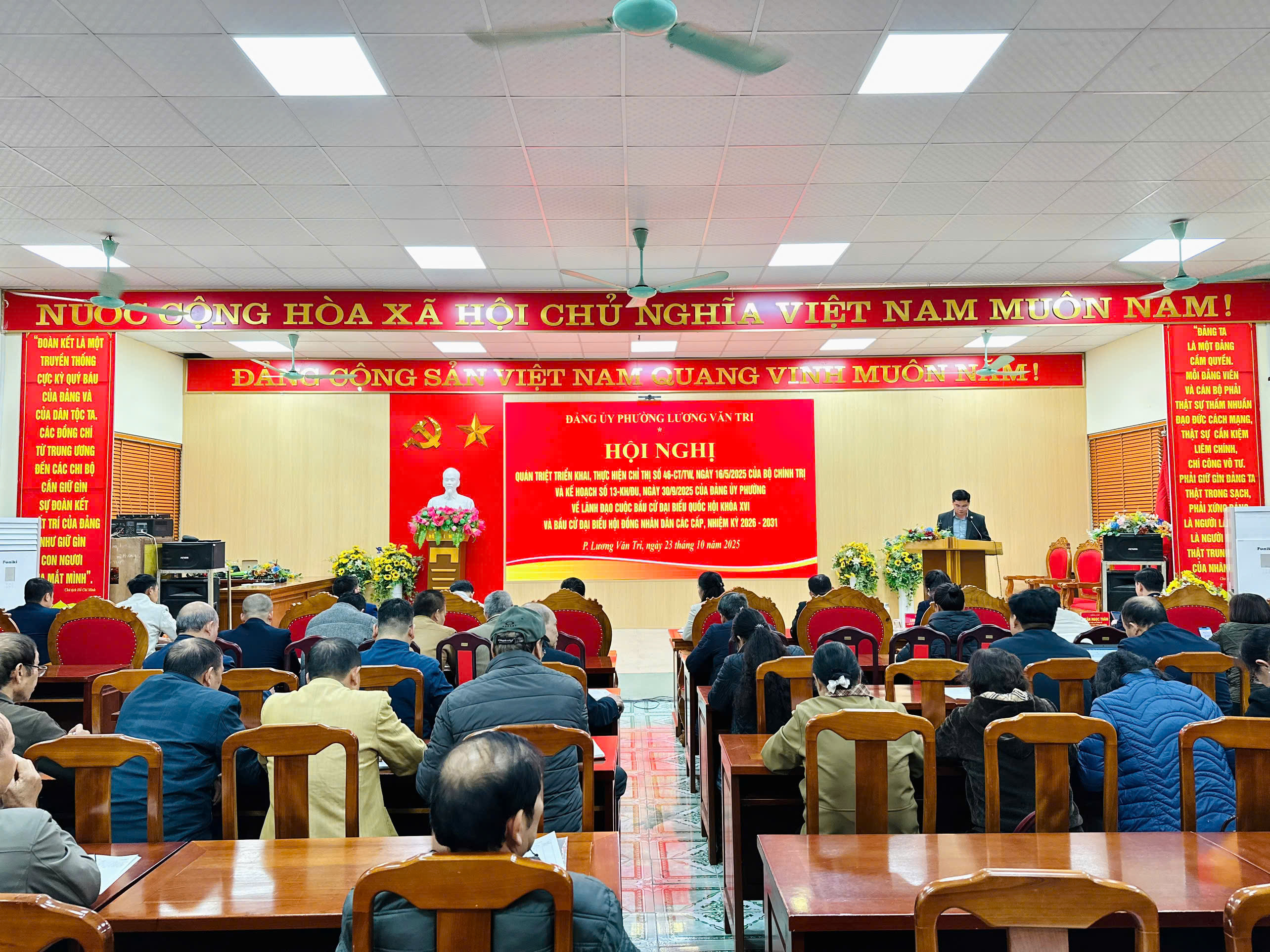 Chiều ngày 23/10/2025, Đảng uỷ phường Lương Văn Tri tổ chức Hội nghị quán triệt chỉ thị số 46-CT/TW, ngày 16/5/2025 của Bộ Chính trị và Kế hoạch số 13-KH/ĐU, ngày 30/9/2025 của Đảng uỷ phường Lương Văn Tri về lãnh đạo cuộc bầu cử đại biểu Quốc hội khoá XVI và bầu cử đại biểu Hội đồng nhân dân các cấp, nhiệm kỳ 2026 – 2031.
