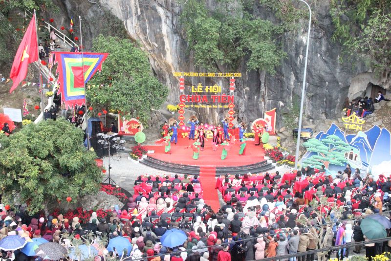 Lễ hội Chùa Tiên diễn ra vào này 18 tháng Giêng hàng năm, là dịp để Nhân dân và du khách thập phương lên Chùa dâng hương, nguyện cầu những điều tốt đẹp, vãn cảnh động Chùa Tiên - Giếng Tiên - Hang Thủy Cung và tham dự nhiều trò chơi mang đậm bản sắc văn hóa dân tộc như: đẩy gậy, bịt mắt đập niêu, nhảy sạp, ô ăn quan… tạo nên không khí vui tươi, hào hứng trong suốt thời gian diễn ra lễ hội.
