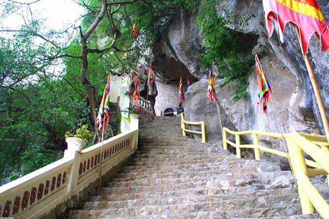 Cách chùa Tiên không xa, là Hang Thủy Cung với hệ thống cung, ban thờ linh thiêng cùng với những thạch nhũ đá muôn hình, muôn vẻ được thiên nhiên kiến tạo qua hàng nghìn năm, lung linh và vô cùng sống động.