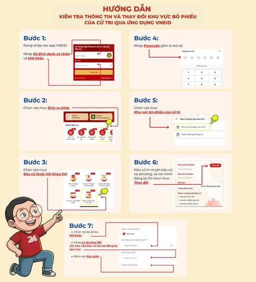 HƯỚNG DẪN KIỂM TRA THÔNG TIN VÀ THAY ĐỔI THÔNG TIN KHU VỰC BỎ PHIẾU CỦA CỬ TRI QUA ỨNG DỤNG VNEID