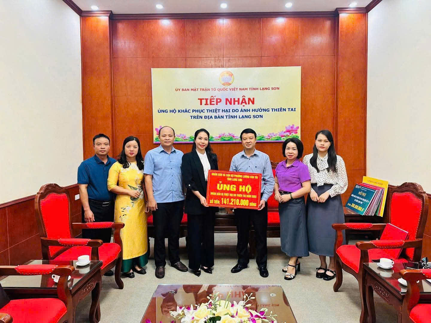 Ngày 20/10/2025 đồng chí Dương Thị Huyền Phương - Tỉnh uỷ viên, Bí thư Đảng uỷ, Chủ tịch HĐND phường cùng các đồng chí trong Ban Thường trực Uỷ ban MTTQ Việt Nam phường Lương Văn Tri đại diện cho toàn thể nhân dân và cán bộ phường Lương Văn Tri đã bàn giao cho Uỷ ban MTTQ VN tỉnh Lạng Sơn số tiền 141.210.000 VNĐ (Một trăm bốn mươi mốt triệu hai trăm mười nghìn đồng) nhằm kịp thời hỗ trợ bà con nhân dân bị thiệt hại do thiên tai gây ra.