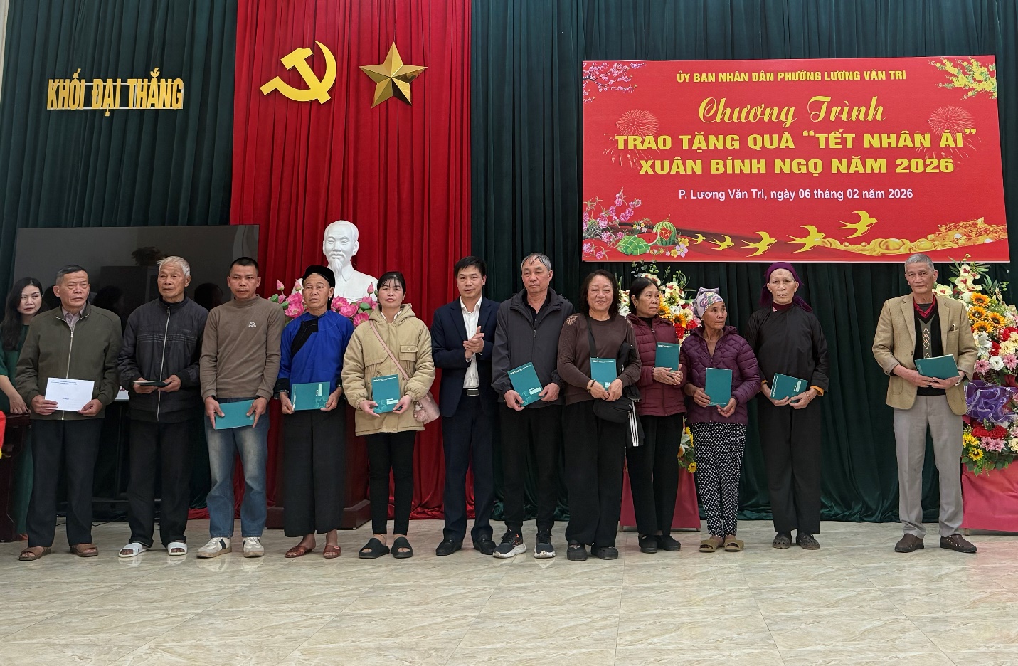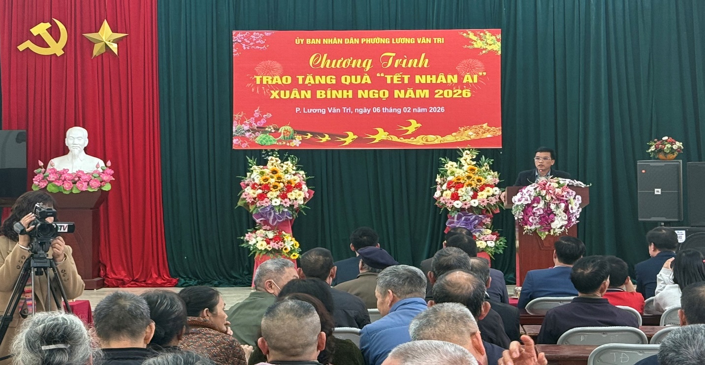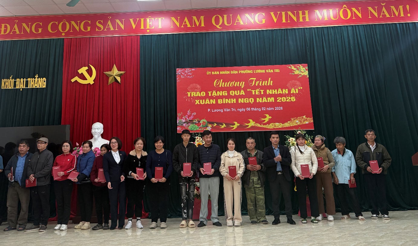 Chiều ngày 06/02/2026, Đảng uỷ – HĐND – UBND – Ủy ban MTTQ Việt Nam phường Lương Văn Tri phối hợp với các doanh nghiệp, mạnh thường quân tổ chức Chương trình Tuần lễ “Tết Nhân ái” – Xuân Bính Ngọ năm 2026 tại Nhà văn hóa khối Đại Thắng, phường Lương Văn Tri.