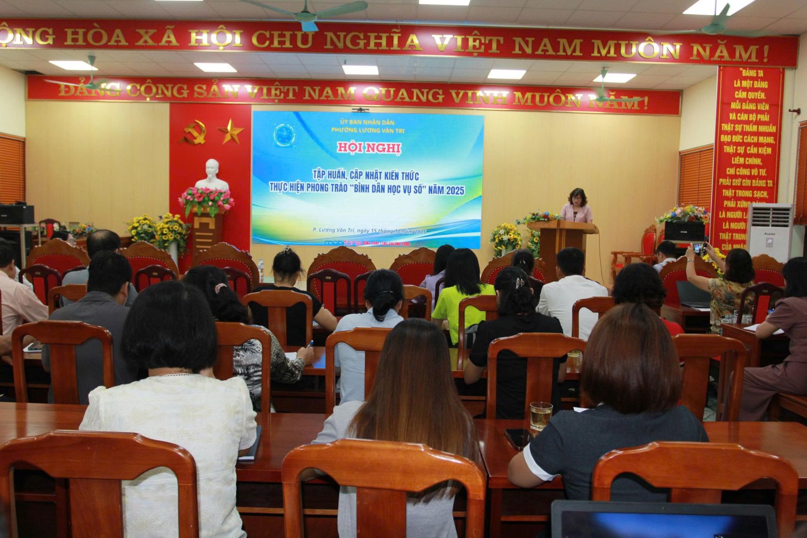 Ngày 15/10/2025, UBND phường Lương Văn Tri tổ chức hội nghị tập huấn, cập nhật kiến thức trong thực hiện phong trào “Bình dân học vụ số”. Tham gia hội nghị có hơn 100 công chức, viên chức và thành viên Tổ công nghệ số cộng đồng trên địa bàn phường được cập nhật kiến thức về trí tuệ nhân tạo (AI).