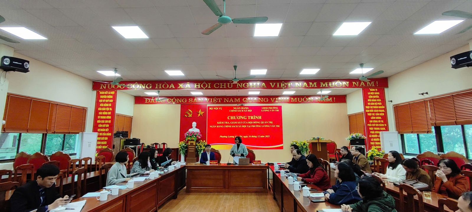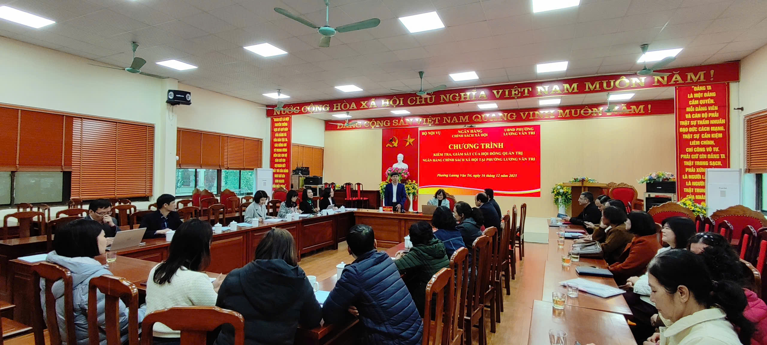 Ngày 16/12/2025 Hội đồng quản trị Ngân hàng Chính sách xã hội kiểm tra, làm việc tại phường Lương Văn Tri