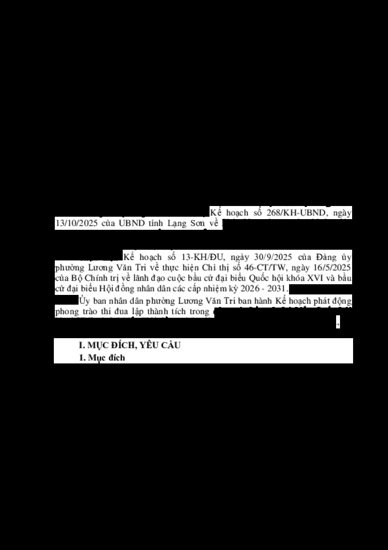 | Tiêu đề văn bản | Kế hoạch Phát động phong trào thi đua lập thành tích trong công tác bầu cử đại biểu Quốc hội khoá XVI và đại biểu Hội đồng nhân dân các cấp nhiệm kỳ 2026 - 2031 | ||