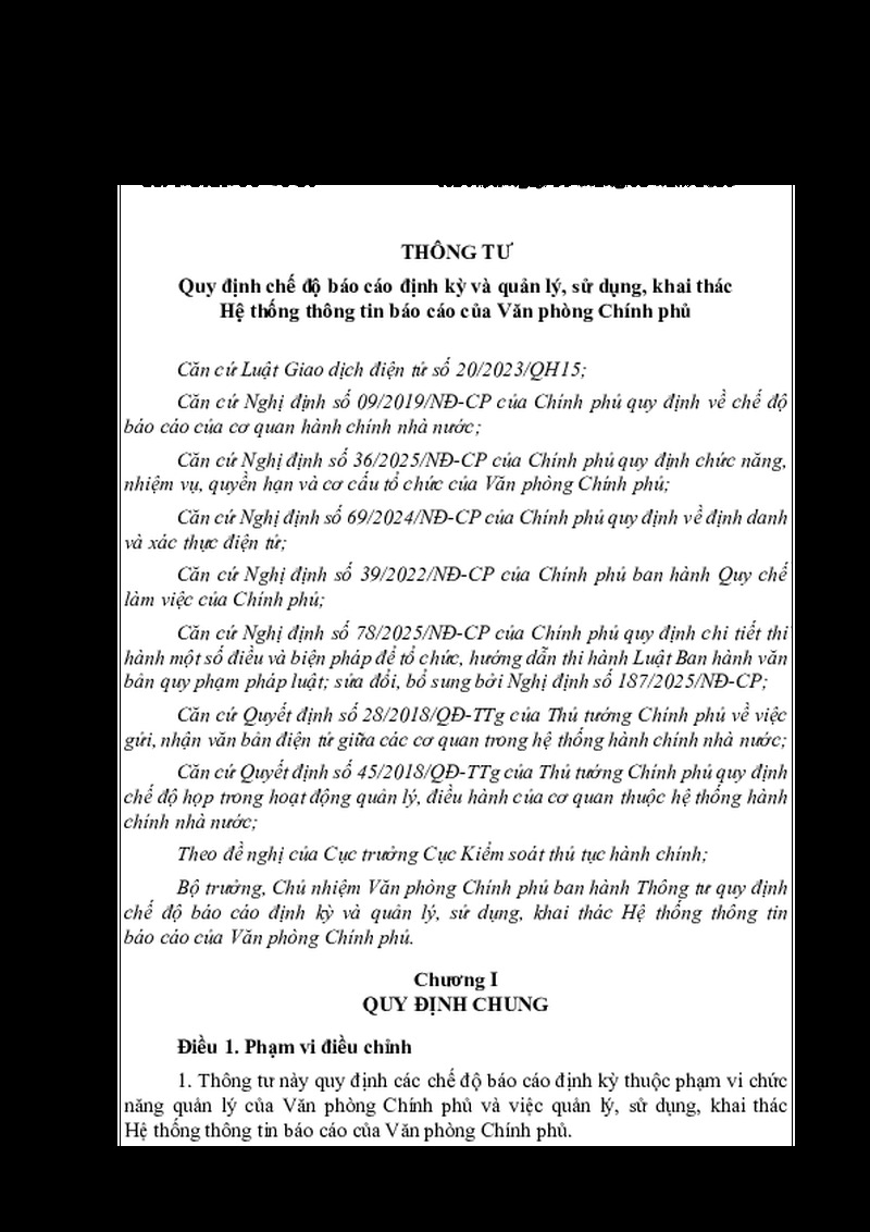 | Tiêu đề văn bản | Thông tư 5/2025/TT-VPCP Quy định chế độ báo cáo định kỳ và quản lý, sử dụng, khai thác Hệ thống thông tin báo cáo của Văn phòng Chính phủ | ||