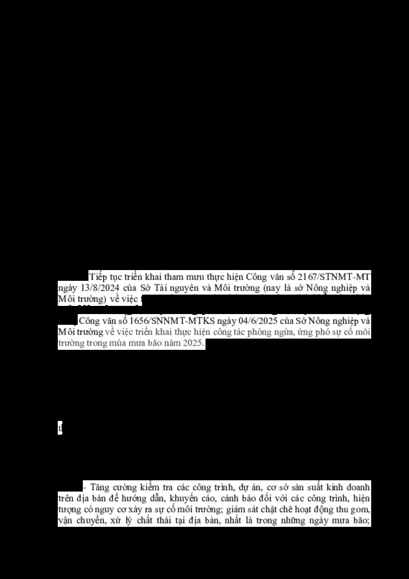 | Tiêu đề văn bản | V/v tăng cường triển khai thực hiện công tác phòng ngừa,ứng phó sự cố môi trường; bảo đảm vệ sinh môi trường mùa mưa bão | ||